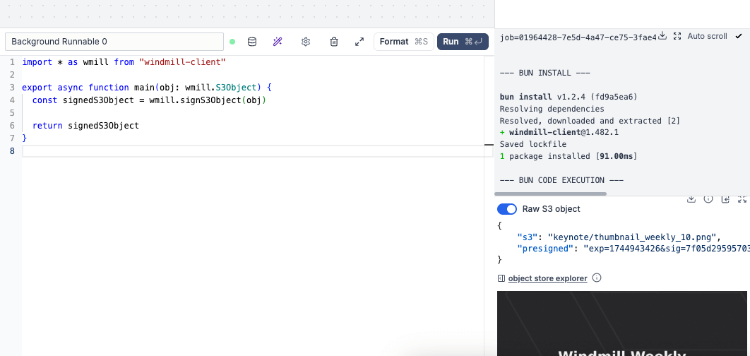 We introduce native result streaming in 1.518.0. Returns a stream (any AsyncGenerator or iter compatible object) as a result OR to stream text before the result is fully returned. It works with Typescript (Bun, Deno, Nativets), Python and is compatible with agent workers. If not returning the stream directly, we introduce 2 new functions on our SDK: wmill.streamResult(stream) (TS) and wmill.stream_result(stream) (Python), to do it mid-script.