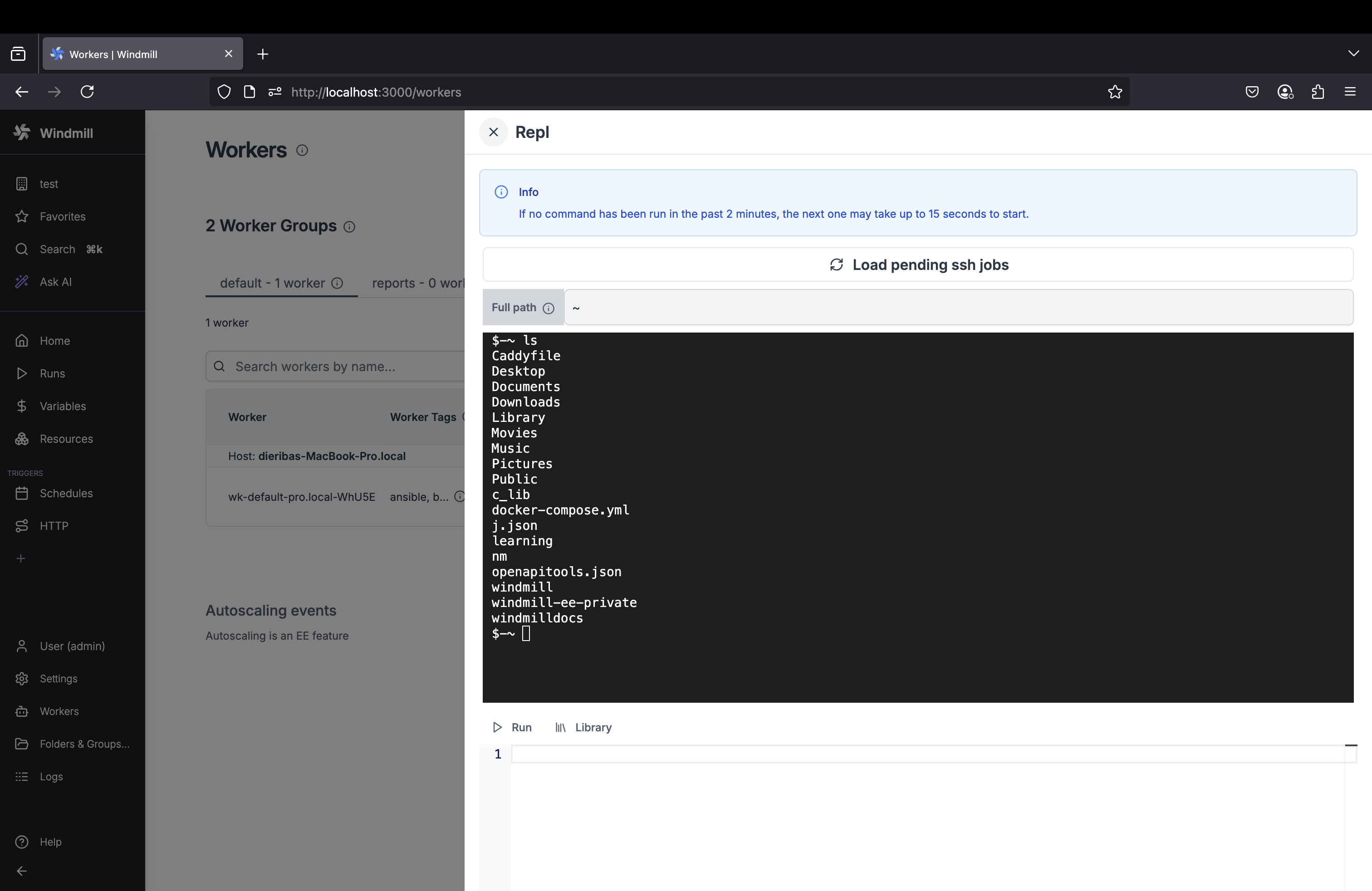 The AI Chat panel now supports API mode, allowing direct interaction with Windmill resources through conversational commands. Access jobs, scripts, flows, resources, variables, schedules, and workers using natural language queries.